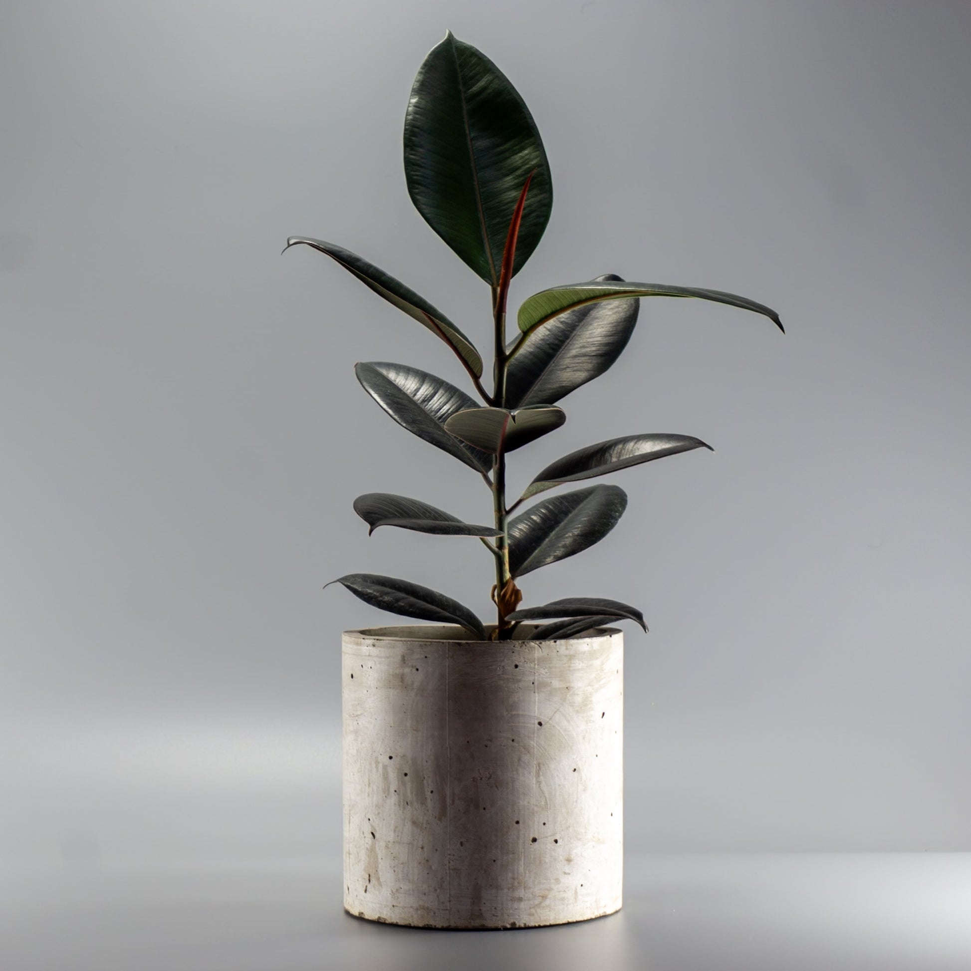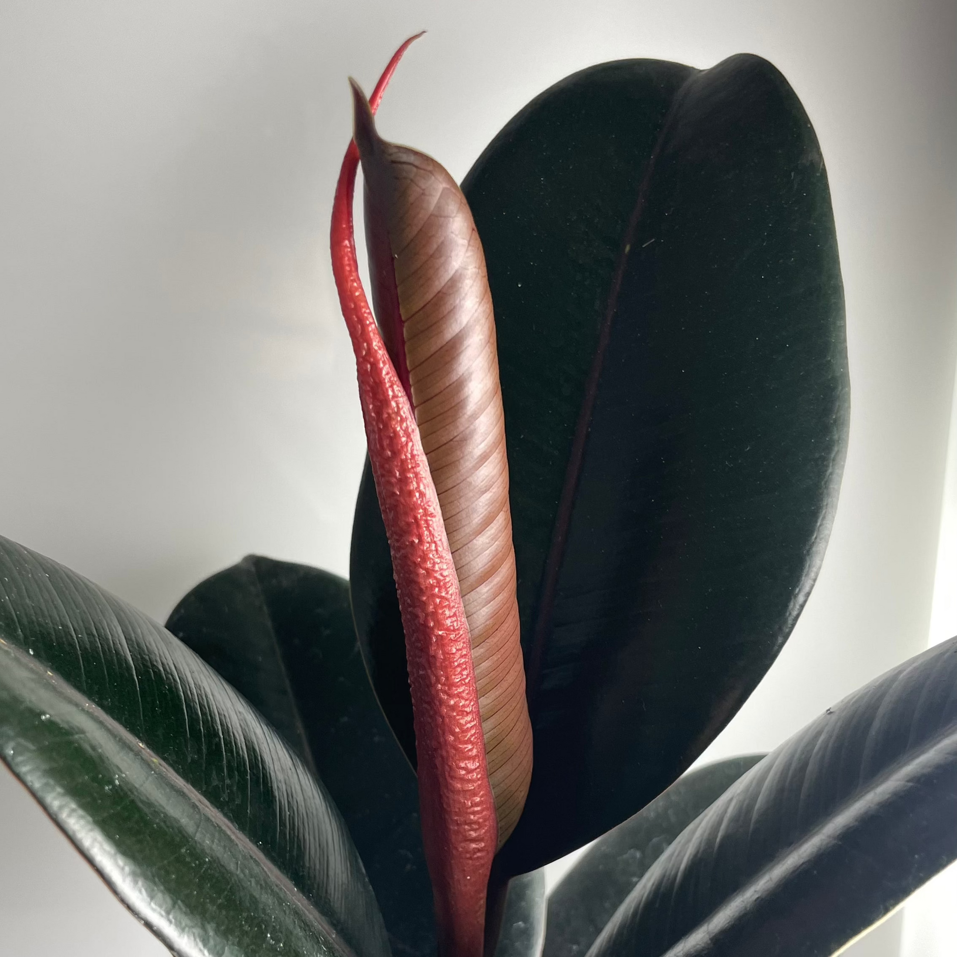 Esta planta es como ese sillón de cuero que siempre queda bien, pero con hojas gruesas y brillantes que hacen que cualquier rincón se vea como portada de revista. El toque burdeos en sus hojas añade una vibra sofisticada pero sin pretensiones. No necesita llamar la atención, simplemente la tiene.