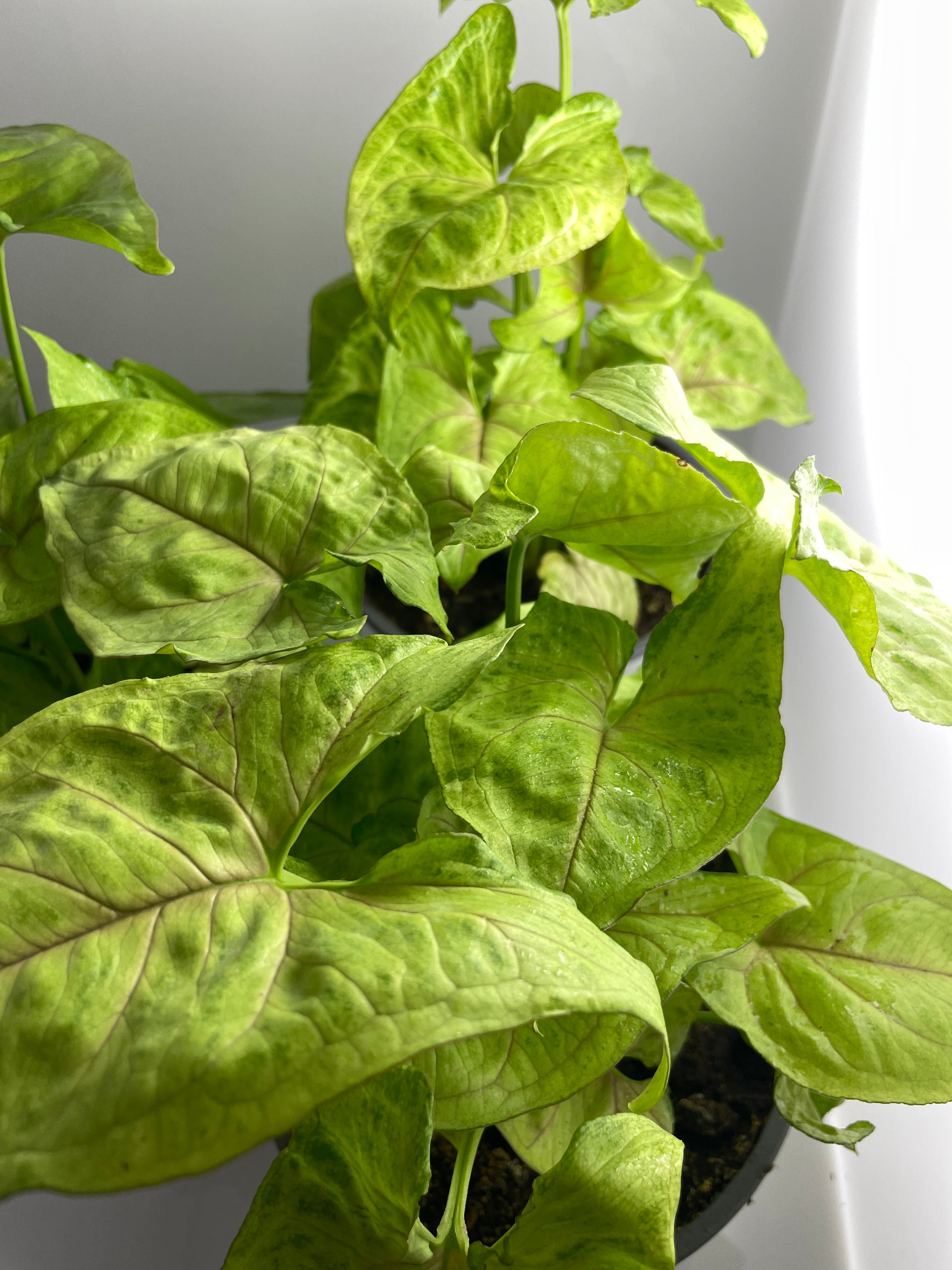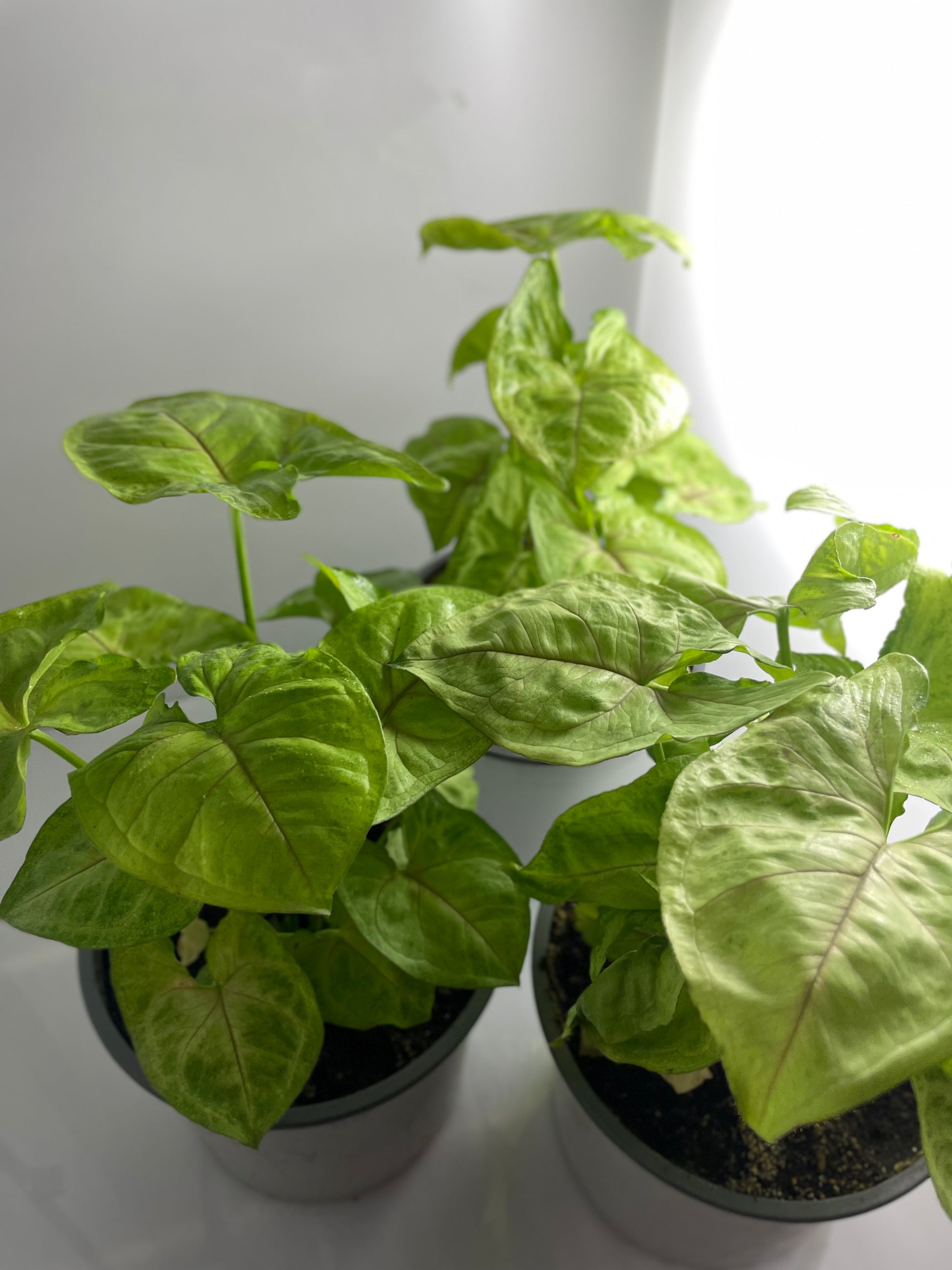 Este Syngonium es perfecto para llenar espacios sin complicarte la vida. Ya sea colgando o trepando, siempre parece estar haciendo algo interesante, como esa persona que nunca pierde el enfoque y siempre tiene buena vibra. 🌿